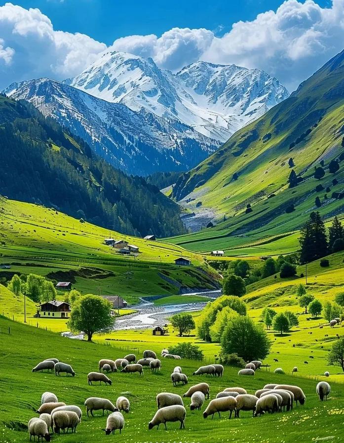 第二天:果子沟大桥(新疆的标志性建筑)- 特克斯八卦城(没有红绿灯,呈八卦形布局)- 那拉提草原(“空中草原”,花海与牛羊共存)。
