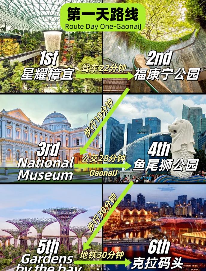 🗺行程:星耀樟宜⏩福康宁公园⏩国家博物馆⏩鱼尾狮公园⏩滨海湾花园⏩克拉码头