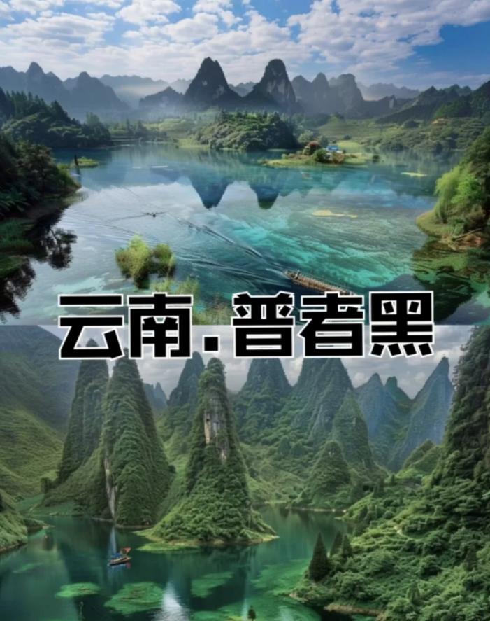 3. 普者黑湖:乘坐游船或竹筏,捕捉与湖水和山峦交融的美丽瞬间。