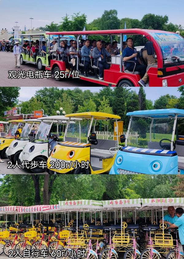 ③代步车:两人车每小时200元(需押金600元),四人车每小时300元(需押金900元)