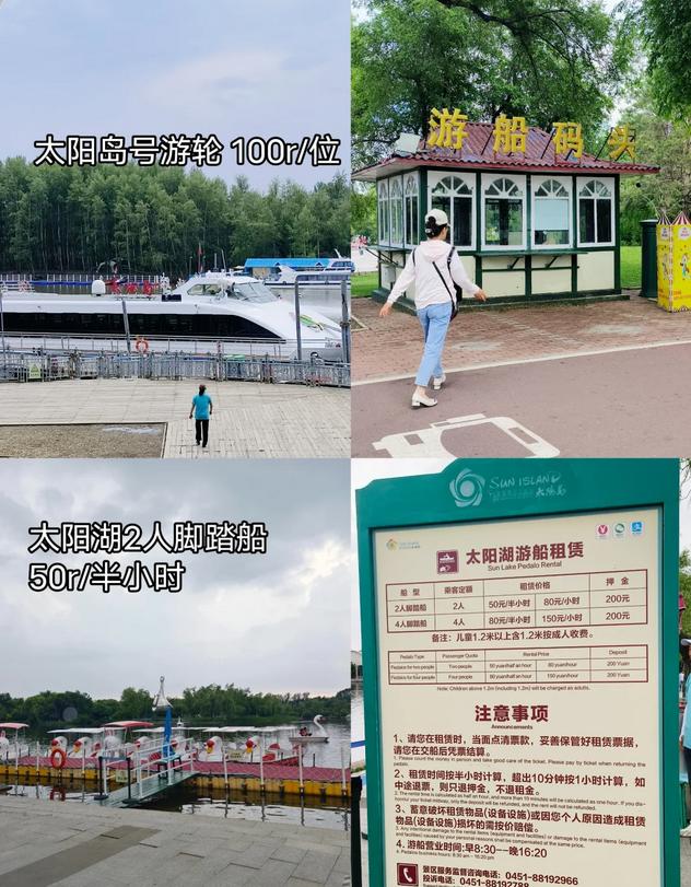 ①松花江游轮:乘坐“太阳岛号”,环境优雅且配备空调,费用为每位100元