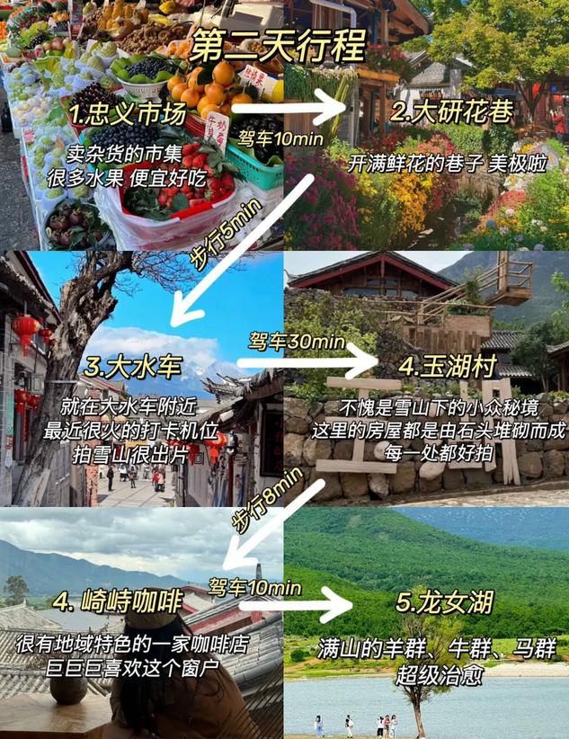 忠义市场➡️大研花巷➡️大力水车➡️玉湖村➡️龙女湖