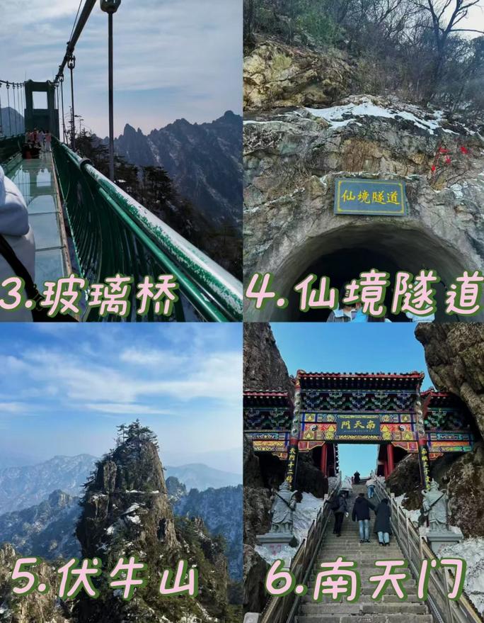 ✅懒人版(全程索道+步行3小时) 中灵索道(15分钟直达中天门)→峰林索道(10分钟到达仙境隧道口)→穿云栈道→十里画屏(精华段!)→伏牛山主峰→玻璃观景台→南天门→金顶道观群(疯狂拍照📸)→峰林索道+中灵索道下山