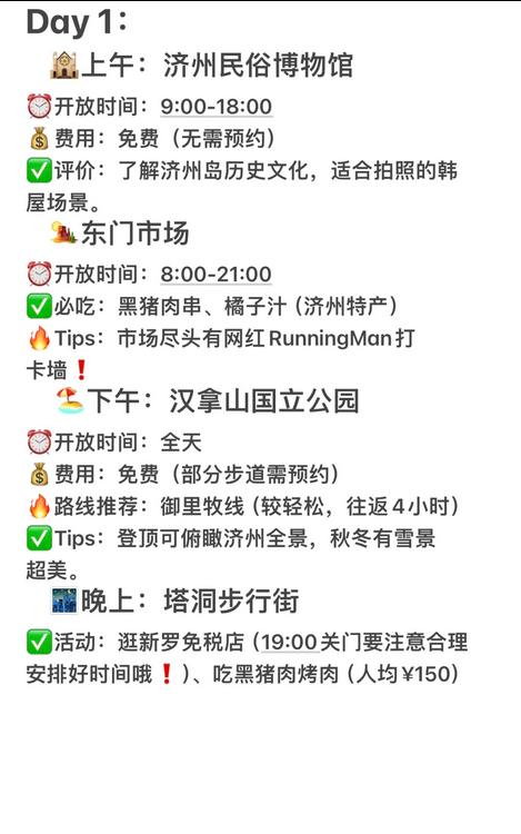 ✅交通:若需租车,请持有国际驾照,乘坐公交时可使用T-money卡(可在便利店购买)。