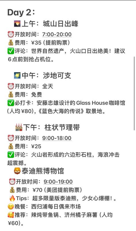 ✅ Day2: 城山日出峰➡️涉地可支➡️柱状节理带➡️泰迪熊博物馆