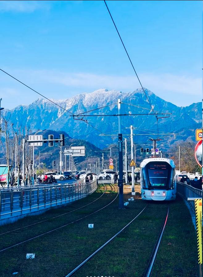 📍 最佳拍照地点:宣化门站,朝玉堂方向行驶,背景为雪山轮廓(晴天时可见幺妹峰!)