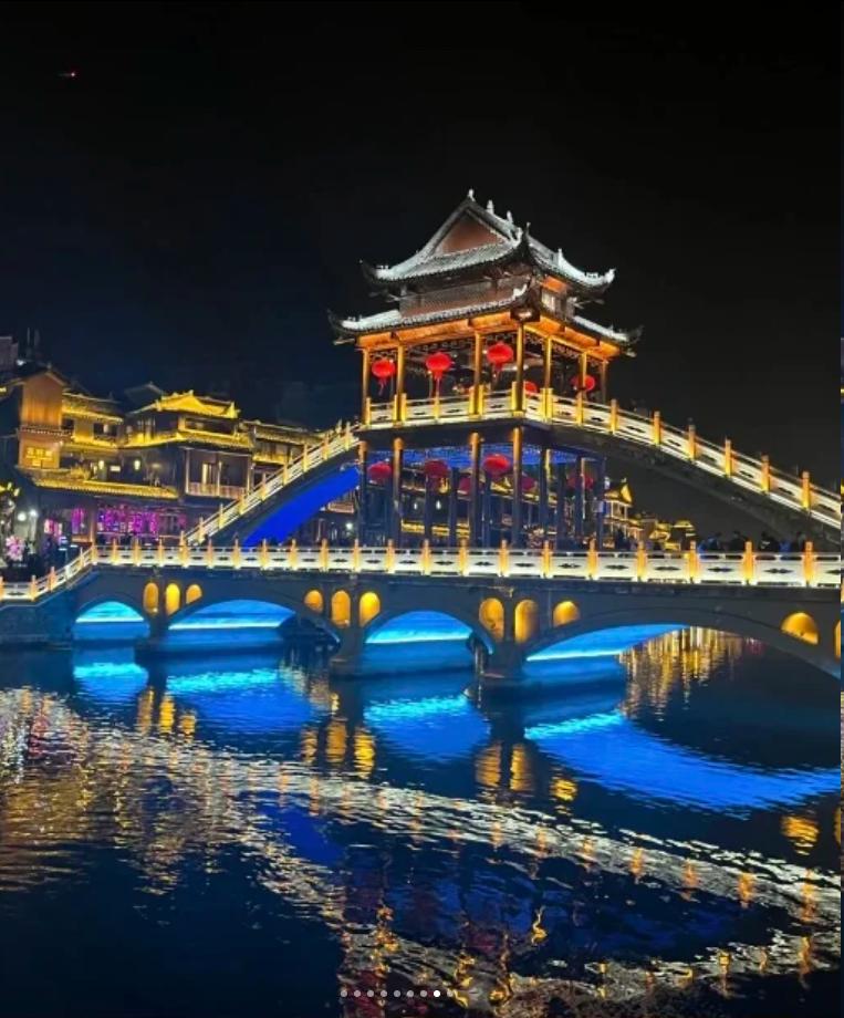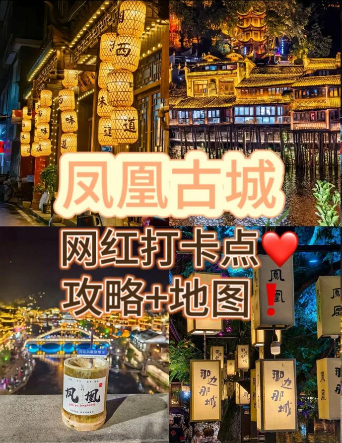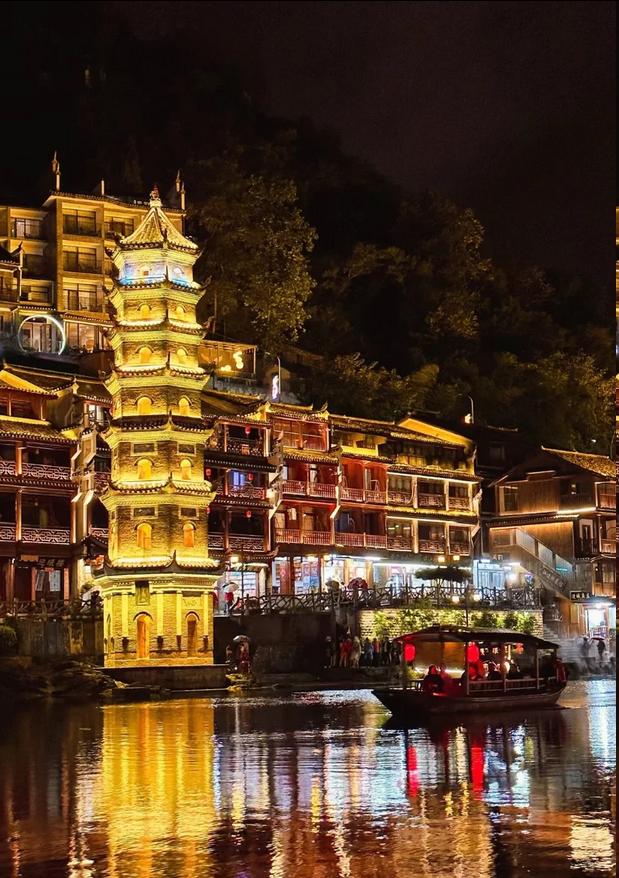 在凤凰古城🎆,有许多拍照的绝佳场所,尤其以夜景闻名,每晚7点灯光亮起❗️❗️❗️从南华桥出发,沿着河边漫步,沿途会发现许多美丽的拍照地点,接下来为大家推荐几个值得打卡的好去处。