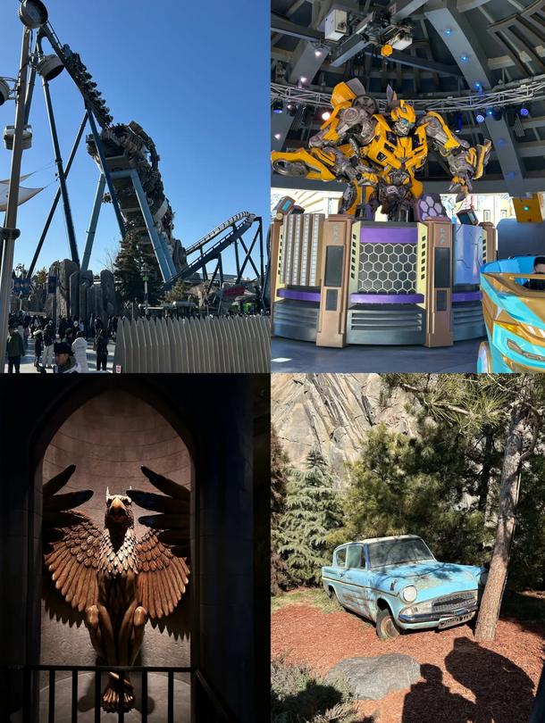 游览:建议提前在网上购票,优速通可以节省排队时间。特别推荐哈利波特园区、变形金刚园区及小黄人乐园。