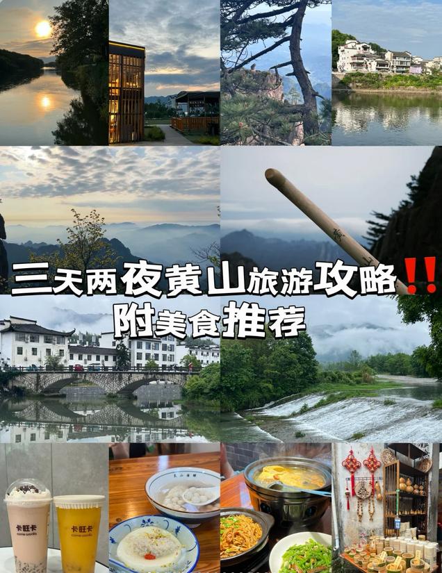 🚄从黄山北站出发,途经黎阳老街、屯溪老街、西溪南,最后入住黄山脚下,晚餐推荐逍遥徽菜馆。