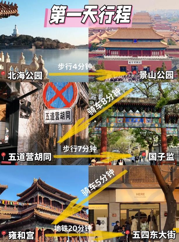 北海公园➠景山公园➠五道营胡同➠国子监街➠雍和宫➠东四北大街
