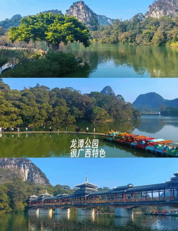 1️⃣龙潭公园:有山水和风雨桥,面积很大,建议乘坐电瓶车游览