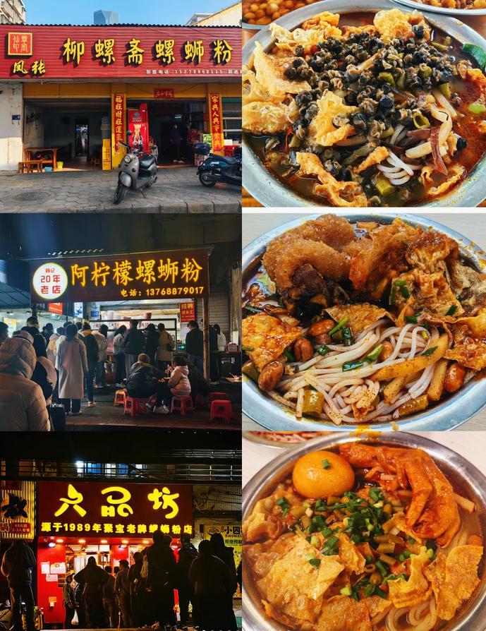 1️⃣螺蛳粉:推荐凤张(螺肉丰富)、阿柠檬(特色卤味)、六品坊(流心蛋),其实街边小店的味道都不错