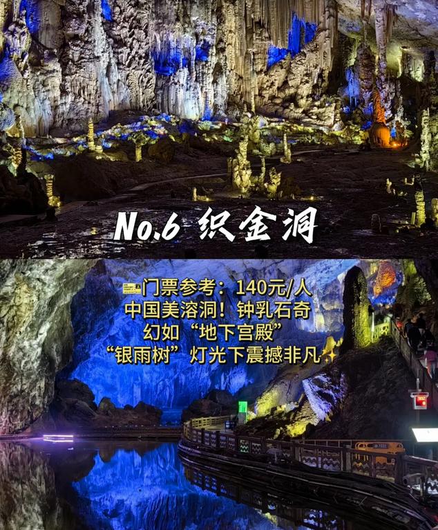 特色:中国最美的溶洞!钟乳石如同“地下宫殿”,在“银雨树”灯光下令人震撼✨