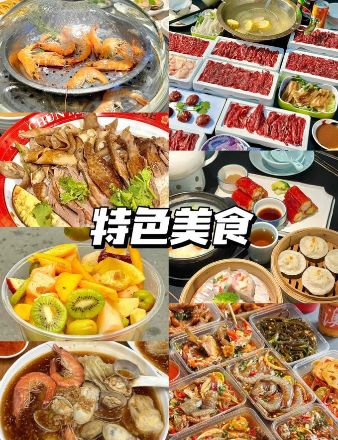 海鲜生腌🦞|甘草水果🥭|牛肉火锅🍲 潮汕肠粉🥣|特色早茶🍽️|海鲜沙嗲面🍝 狮头鹅肉饭🍚|蒸汽海鲜🦀|宵夜大排档🍱
