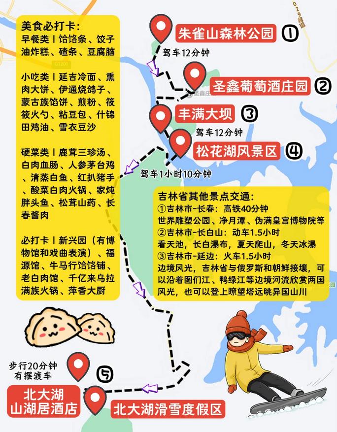 Day3:朱雀山森林公园→圣鑫葡萄酒庄园→丰满大坝→松花湖风景区→北大湖滑雪度假区