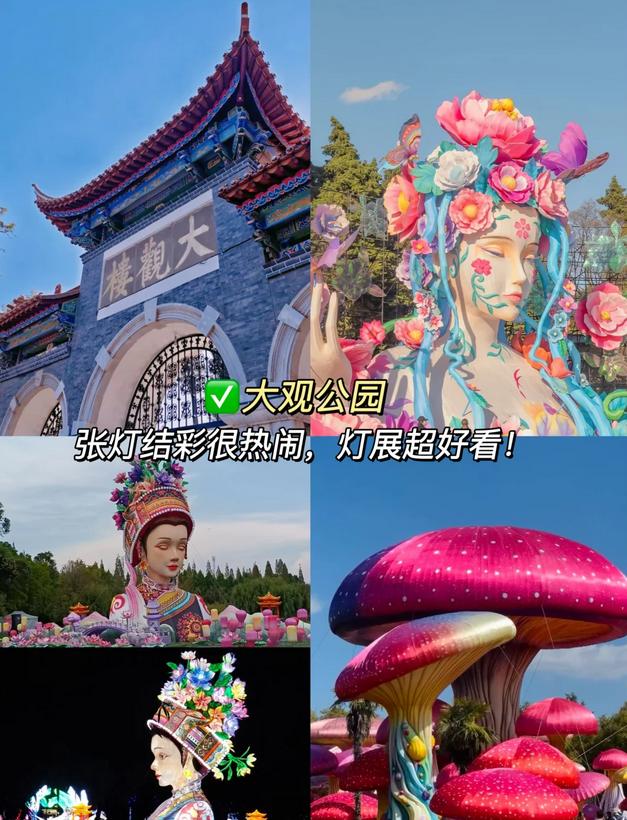 前往大观公园⛲️,春节期间,园内装饰华丽,热闹非凡。登上大观楼,俯瞰滇池的壮丽景色,感受“五百里滇池尽收眼底”的壮观。还有民俗表演,包括舞龙舞狮🦁和花灯戏🏮,年味十足。