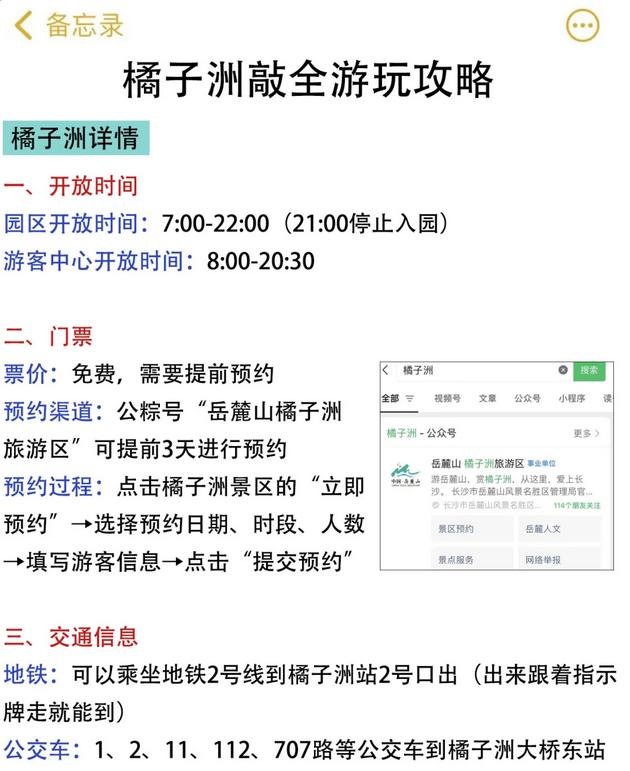 景区预约:通过公粽号搜索“岳麓山 橘子洲旅游区”,提前三天进行预约