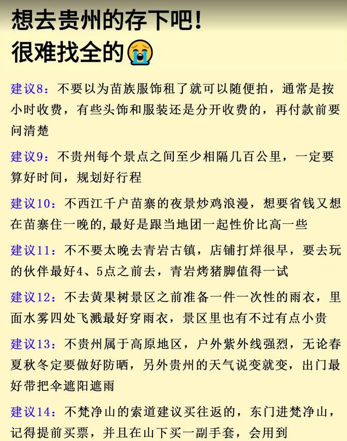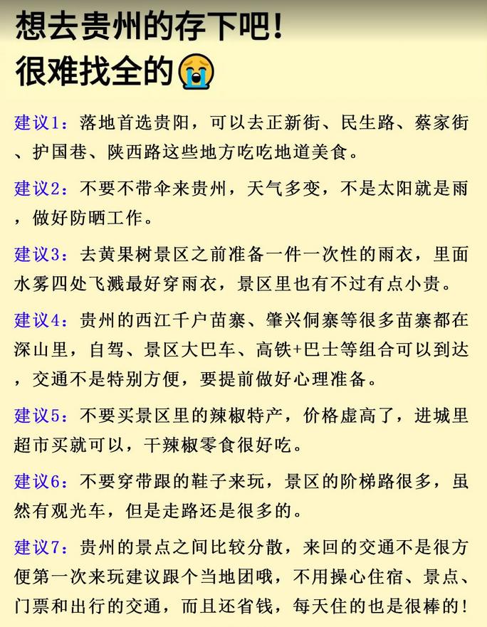 这里有一份详细的贵州旅游攻略,希望对大家有所帮助‼不要再犯错误啦😣