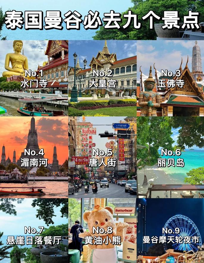 📍大皇宫:展示了传统泰式建筑的魅力,雕刻精美,建筑宏伟。