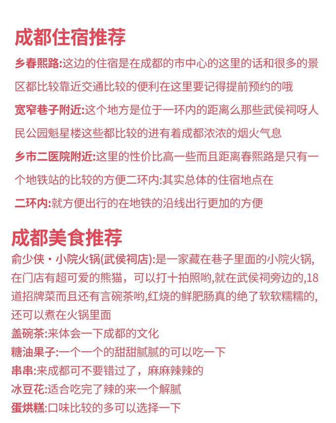 宽窄巷子:体验成都的悠闲与复古,享受当地的小吃。锦里:古色古香的街道,能欣赏到传统四川手工艺品与建筑风格。