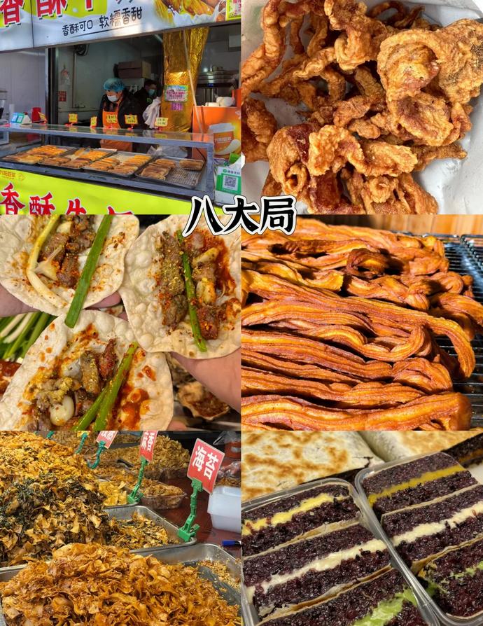 🔹八大局便民市场:从万象汇步行可达,这里是小吃的聚集地!炒锅饼、紫米饼、南瓜条……还有老爷爷的无水面包,每一口都是淄博的美味!
