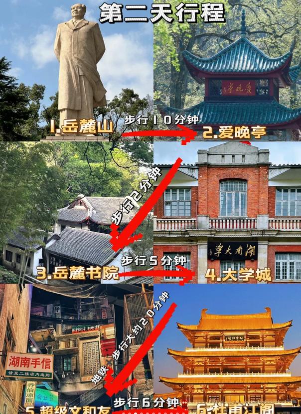 岳麓山➡️爱晚亭➡️岳麓书院➡️大学城️➡️超级文和友➡️杜甫江阁