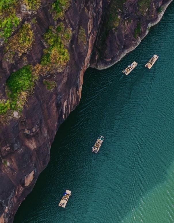 被誉为“小桂林”,在湖上泛舟,湖风徐来,途中偶遇售卖粽子和西瓜的“水上超市”,趣味十足。沿着清澈的河流漂流,两岸的美景如画,令人心旷神怡。
