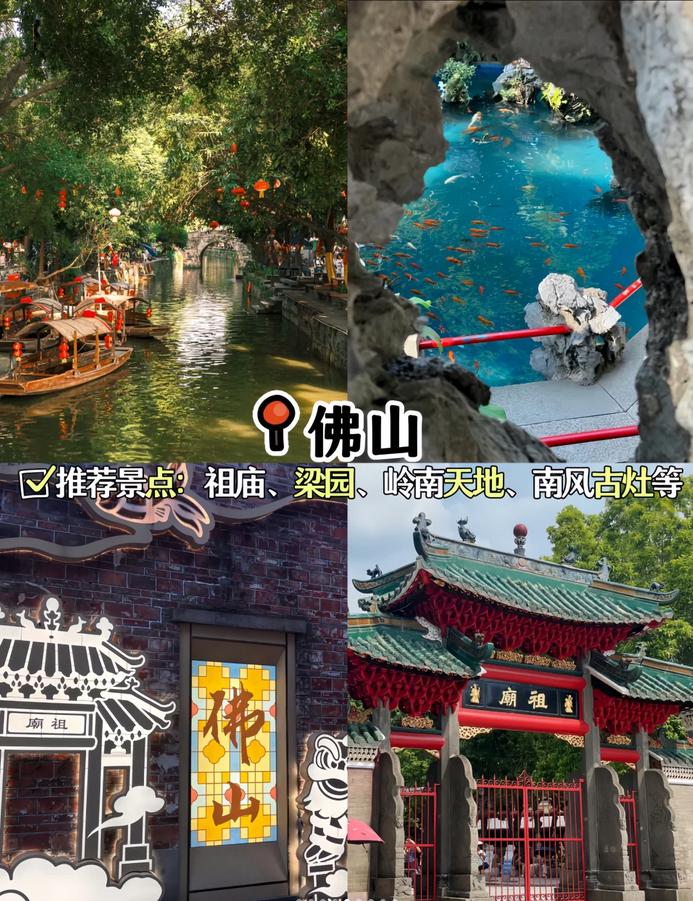 📍必游景点:祖庙、梁园、南风古灶、岭南天地、顺德清晖园等