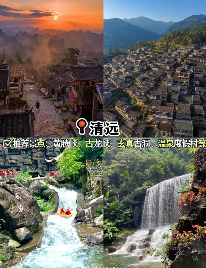 📍必游景点:黄腾峡、古龙峡、玄真古洞、温泉度假村、清远鸡美食街等