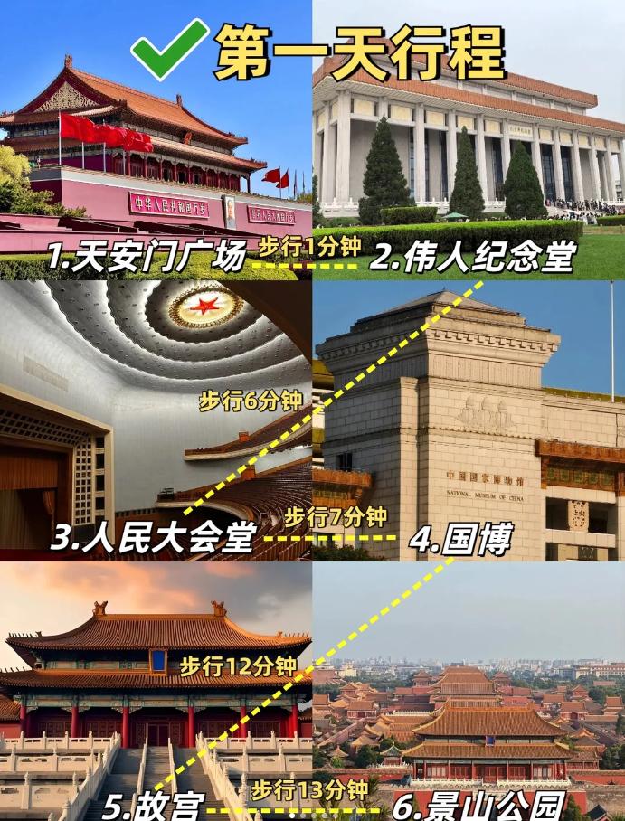 D1天安门广场→伟人纪念堂→人民大会堂→国家博物馆→故宫→景山公园
