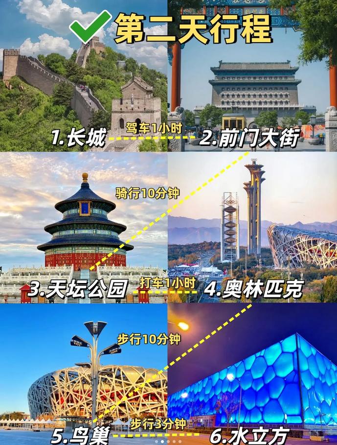 D2长城→前门大街→天坛公园→奥林匹克公园→鸟巢→水立方