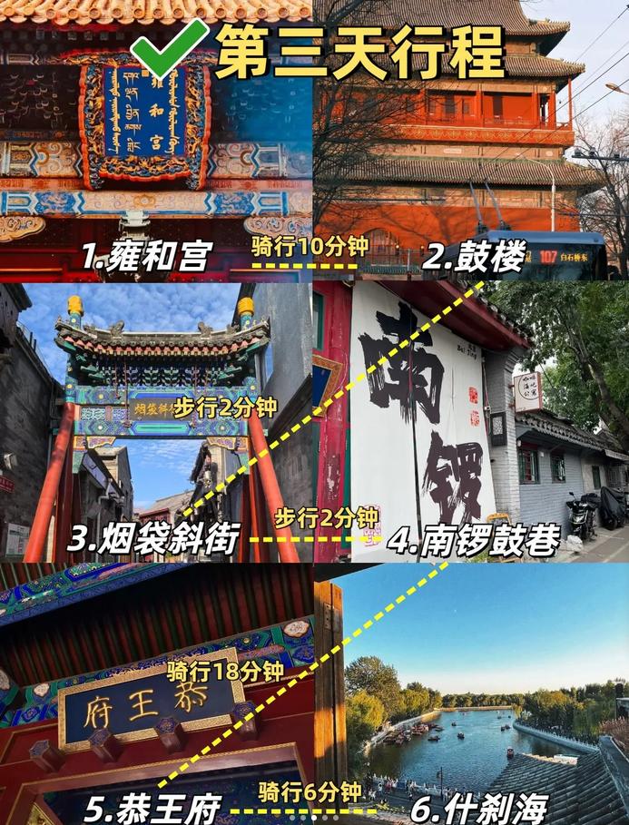 D3雍和宫→鼓楼→烟袋斜街→南锣鼓巷→恭王府→什刹海