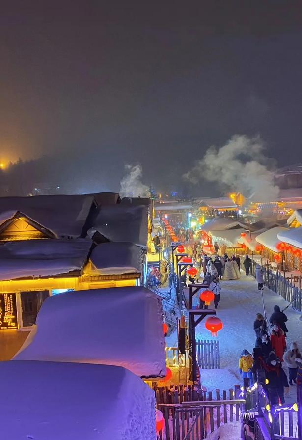 ✨ 晚上欣赏雪乡的夜景,仿佛置身于童话般的梦幻世界中。
