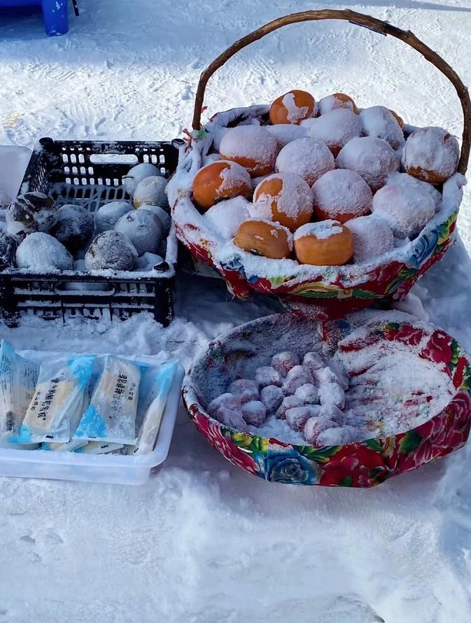 ❄️雪乡特色:冻梨、冻柿子、粘豆包👍🏻