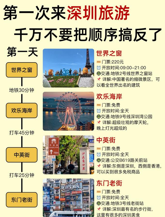 ⏰Day1:世界之窗➡欢乐海岸➡中英街➡东门老街