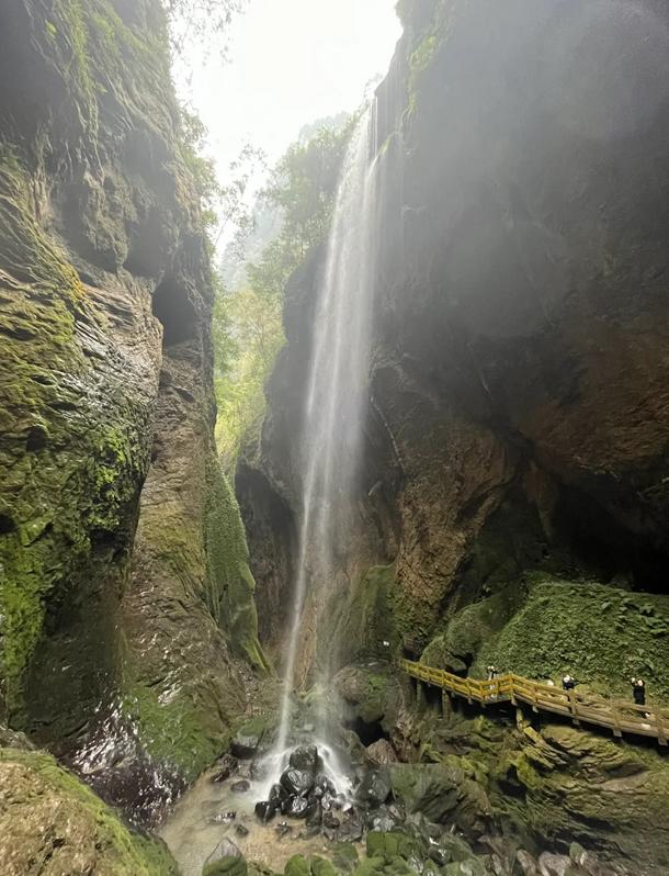 主要景观包括:深邃的峡谷、飞流而下的瀑布、地下暗河以及奇特的钟乳石。