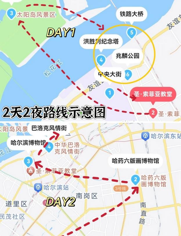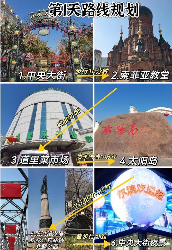 1⃣此行程非常适合周五晚上抵达哈尔滨并在周日下午返回的游客,所有景点均免费开放。