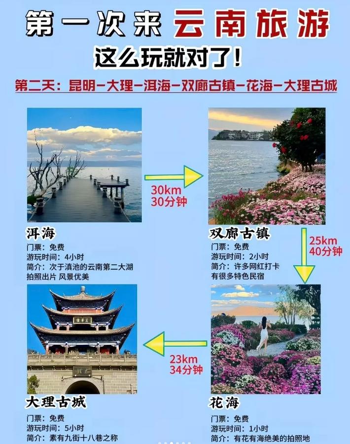 第三天:游览洱海、花海和大理古城,住宿在大理