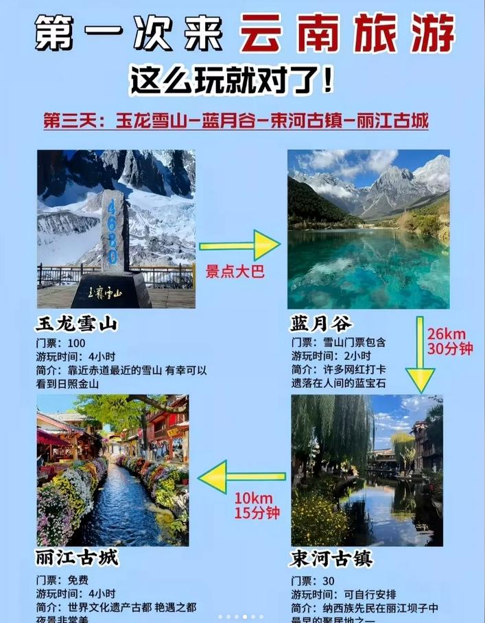 第四天:游览玉龙雪山、蓝月谷、丽水金沙和丽江古城,住宿在丽江