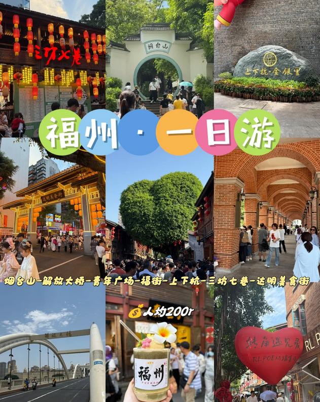“以特种兵的方式游览福州,轻松一天内打卡7个网红地标!从烟台山的复古洋房到三坊七巷的千年古韵,这条路线经过验证,绝不踩雷,拍照、美食与人文兼得!最后附上隐藏拍摄点📸”