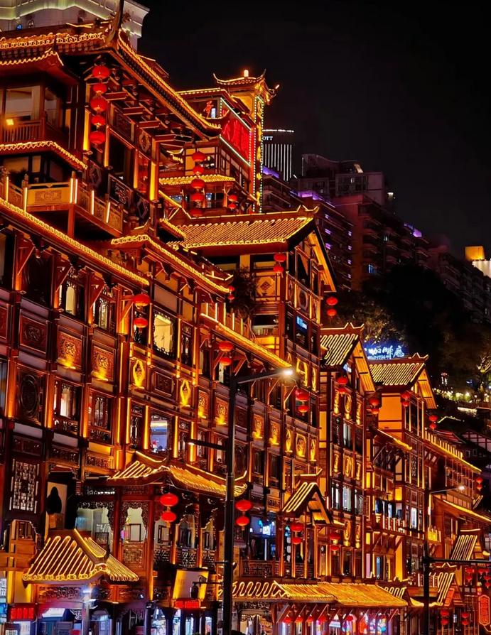 洪崖洞是重庆的标志性景点,白天展现出山城文化的精髓,夜晚则是一场光影的盛宴。