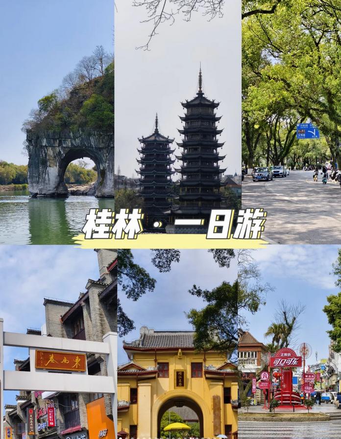 桂林站➡️象山景区➡️滨江路➡️日月双塔➡️正阳步行街➡️东西巷➡️靖江王府