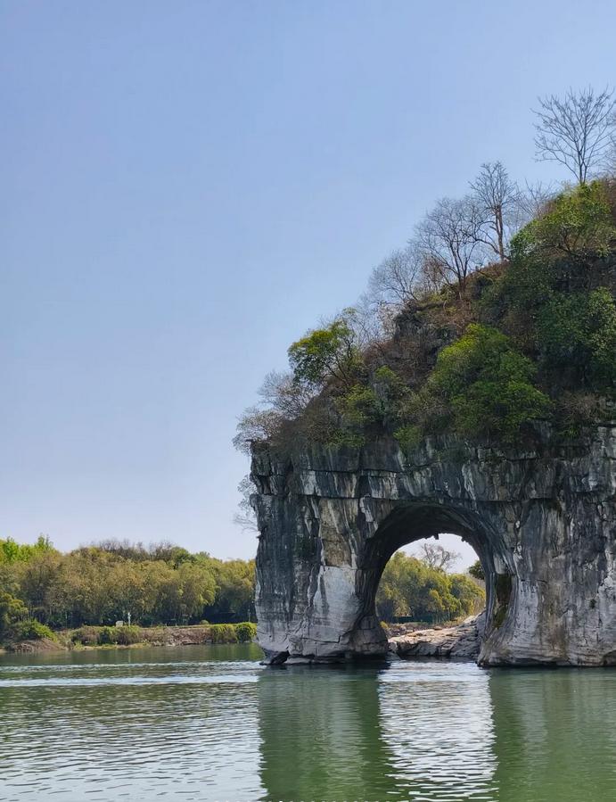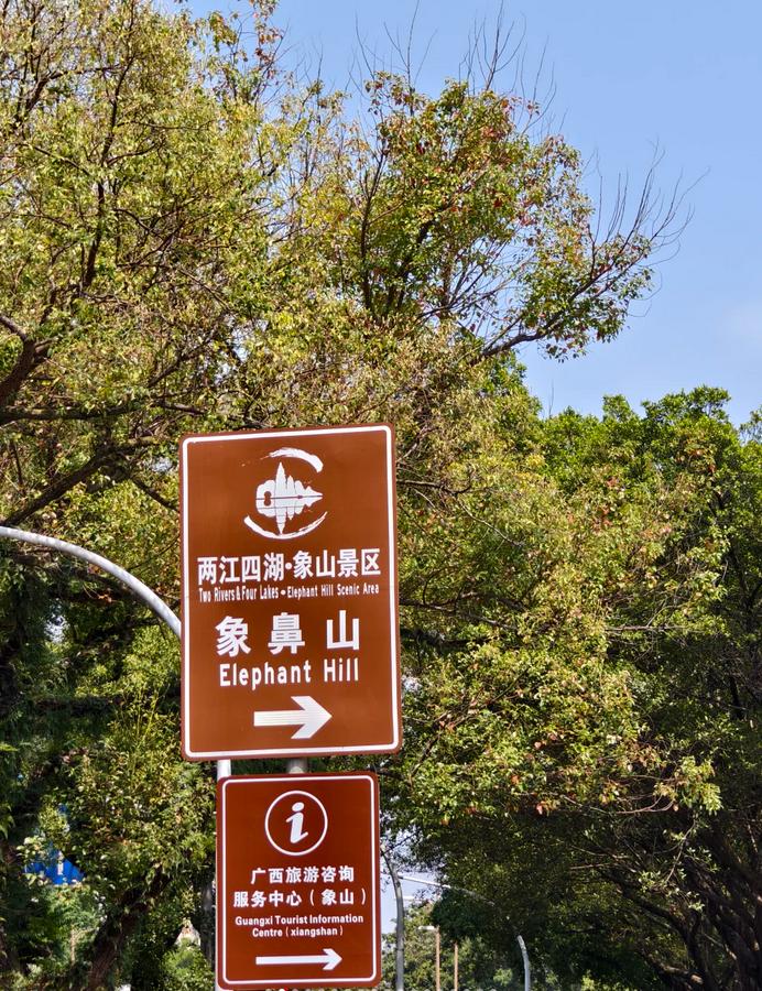 从桂林站打车可以到象鼻山1号门,开放时间为7:00-18:00,进入一号门后向右走可以打卡象鼻山后面的水月洞天(p6),山路稍陡可以选择不登山,沿着河走到象鼻山的正面打卡处,然后从2号口出去(2号口只可出不可进!)
