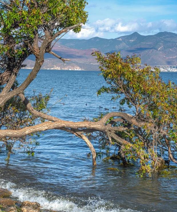 洱海生态廊道:沿途的花海、沙滩与木栈道都是绝佳的拍摄背景。