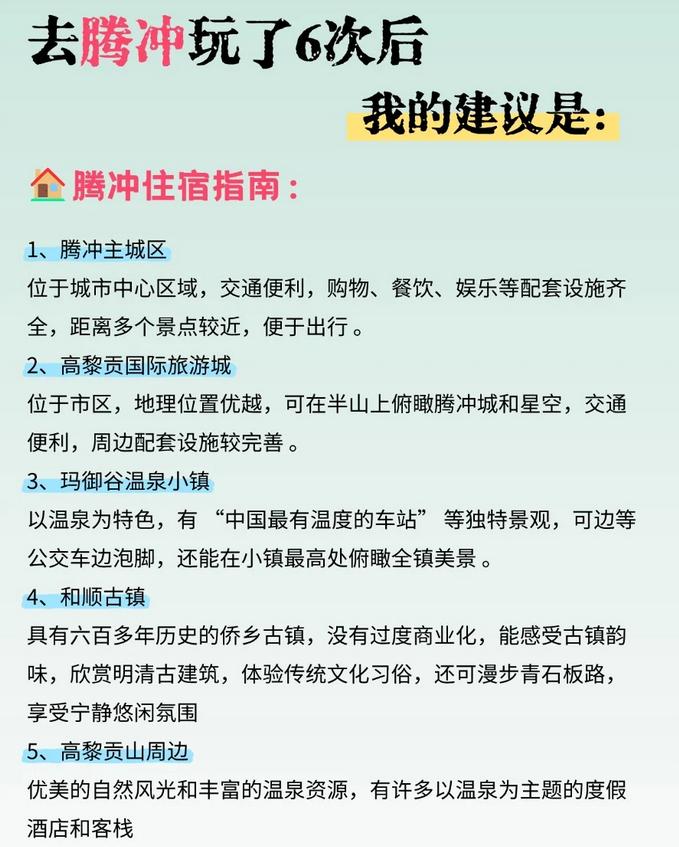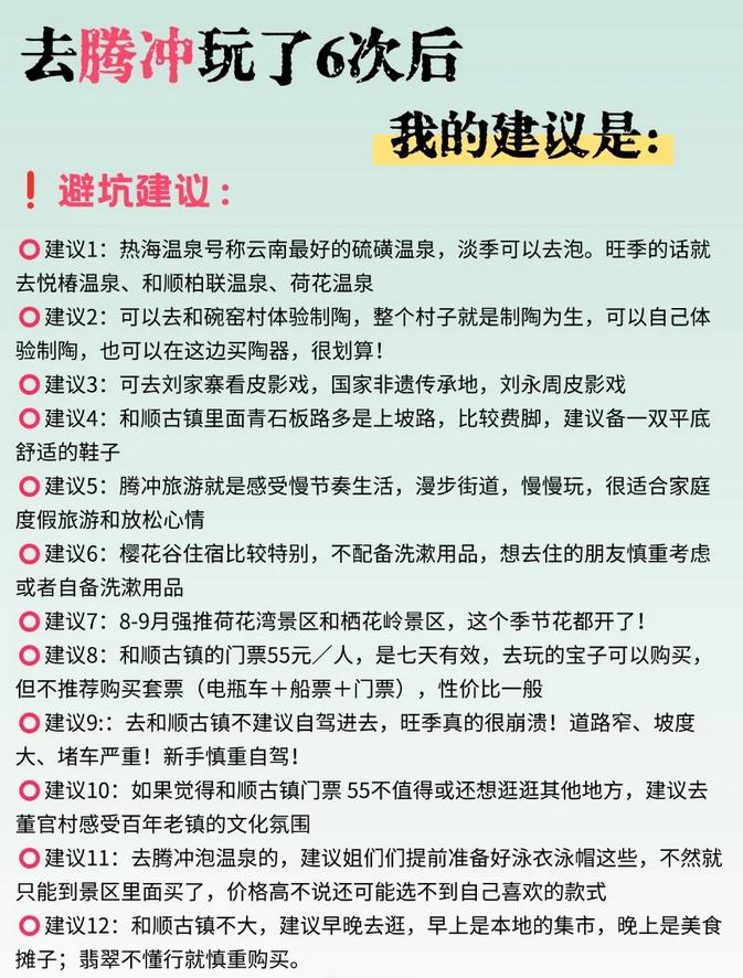 去了腾冲6次,给4-6月去的姐妹们一些建议