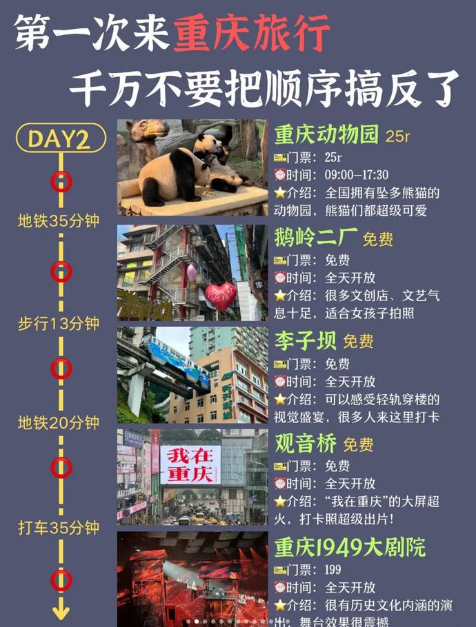 Day2⃣: 重庆动物园➡鹅岭二厂➡李子坝➡观音桥➡重庆1949大剧院