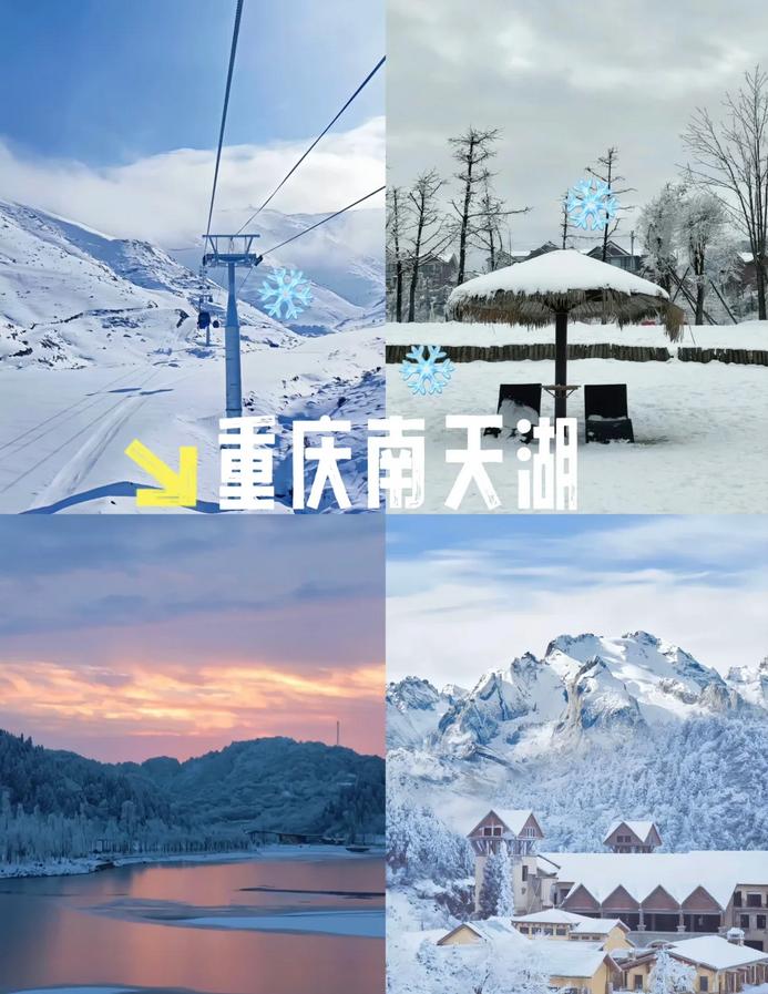 🚴交通:高铁从重庆到丰都票价39元(约1小时),到达高铁站后,可乘坐直达南天湖的大巴车,票价25元(约2小时)到达滑雪场,然后再转乘大巴,票价35元,前往南天湖景区。