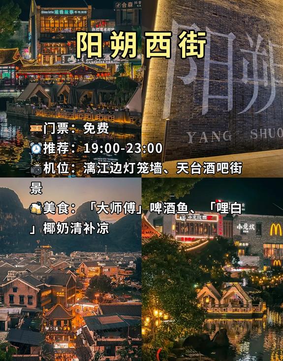 📸拍照位置:漓江边的灯笼墙、天台酒吧的街景