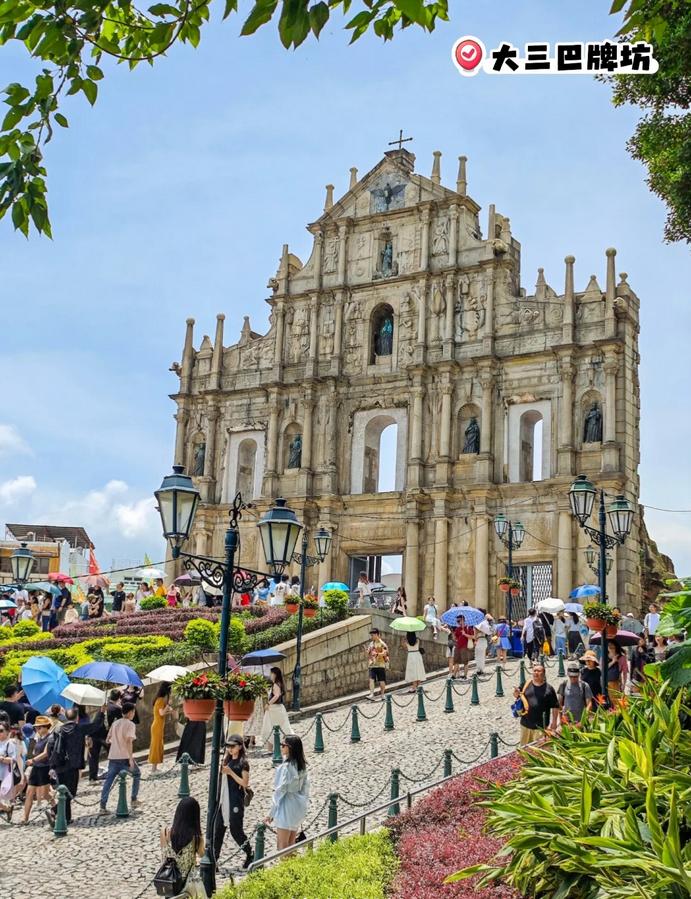 📍大三巴牌坊(建议早上9点前往!)→ 恋爱巷→ 玫瑰堂→ 议事亭前地