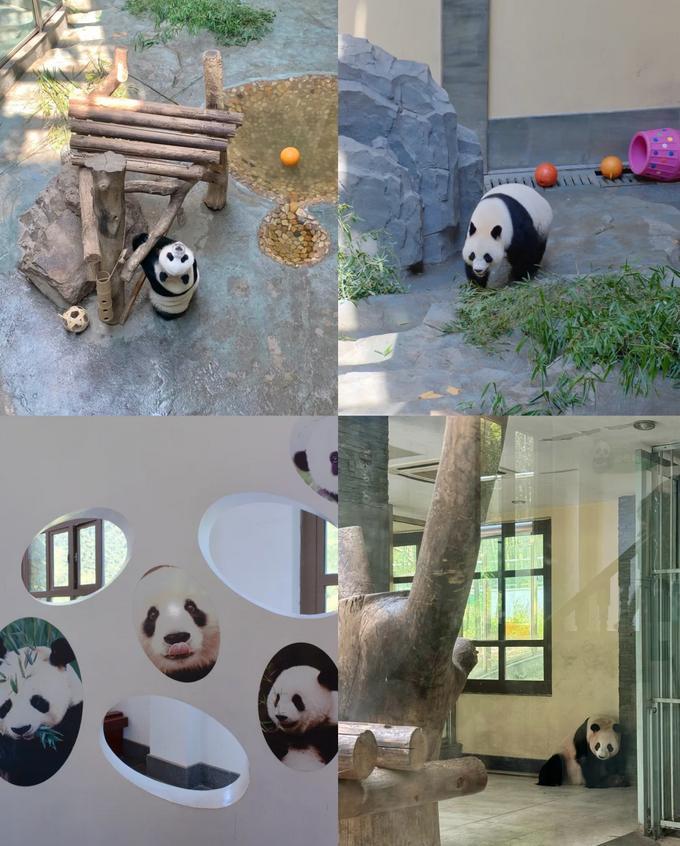 🐼熊猫馆游玩建议: 建议入园后先前往熊猫馆,这样可以减少排队时间。到达鸡鸣村后,根据指示牌🪧右转,经过黄金桥即可到达。大约在10:30时,会看到一只熊猫🐼正在认真进食,还有一只在梦中酣睡💤。